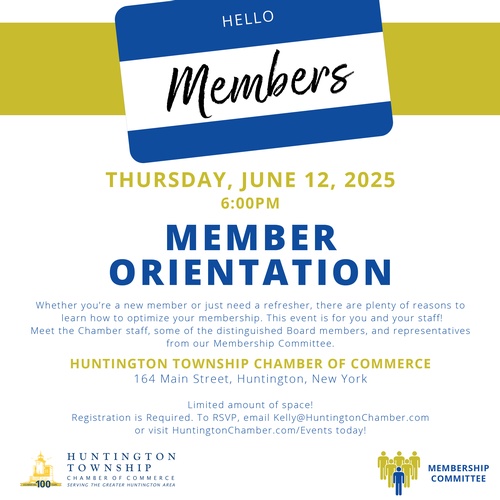 Whether you're a new member or just need a refresher, there are plenty of reasons to learn how to optimize your membership. This event is for you and your staff! Meet the chamber staff, some of our distinguished board members, and representatives from our membership committee. Email Kelly@HuntingtonChamber.com for more details!